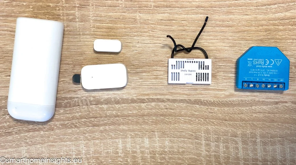Shelly 1L pametni preklopnik - odabir ovog preklopnika bio je iz 2 razloga: Shelly eko sustav već postoji u našem domu, a 1L verzija ne zahtjeva “nulu” u prekidaču. Ovo potonje je prilično bitno. Naime, u našem stanu (što je pravilo u RH) se u zidnim prekidačima strujni krug prekida na faznom vodiču. Kako je to mjesto u koje treba staviti pametni preklopnik, nastaje problem u njegovom napajanju jer u razvodnoj kutiji gdje se prekidači na zidu nalaze ne postoji žica sa nulom. Iz tog razloga Shelly je osmislio posebnu verziju pametnog preklopnika kojim je moguće i bez nule napajati Shelly te s njim upravljati.